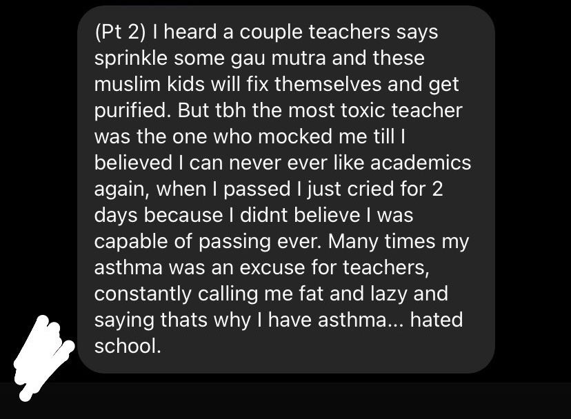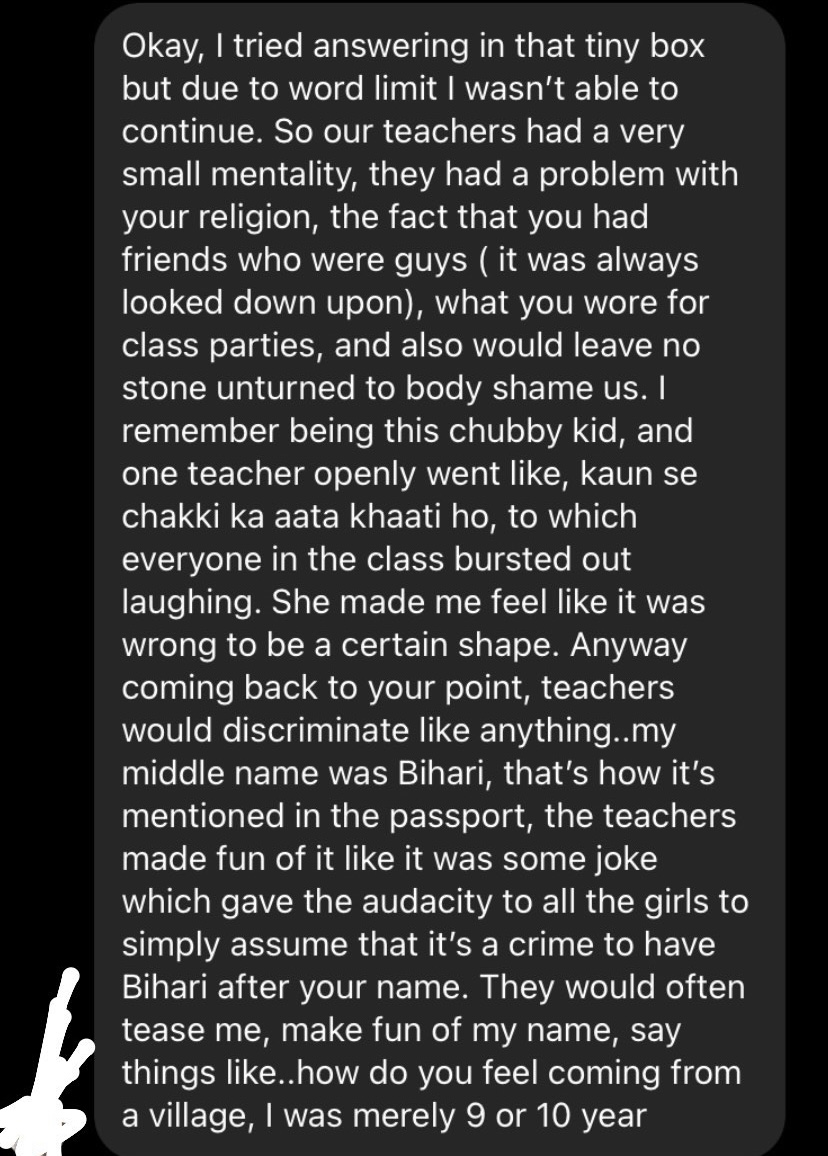 My stories on Instagram also opened a larger conversation into how toxic Indian schools are. I received many many responses – they are far too many for them all to be shared here.